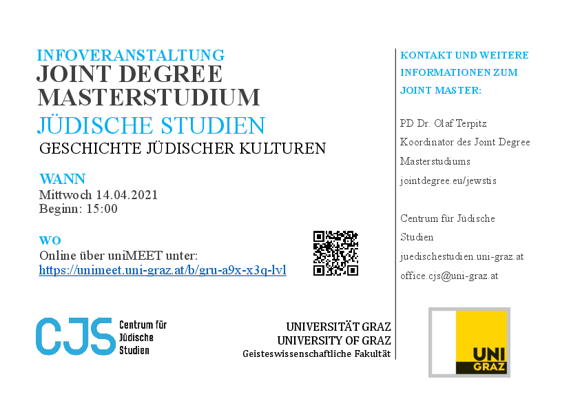 JOINT DEGREE MASTERSTUDIUM. Jüdische Studien. Geschichte jüdischer Kulturen.